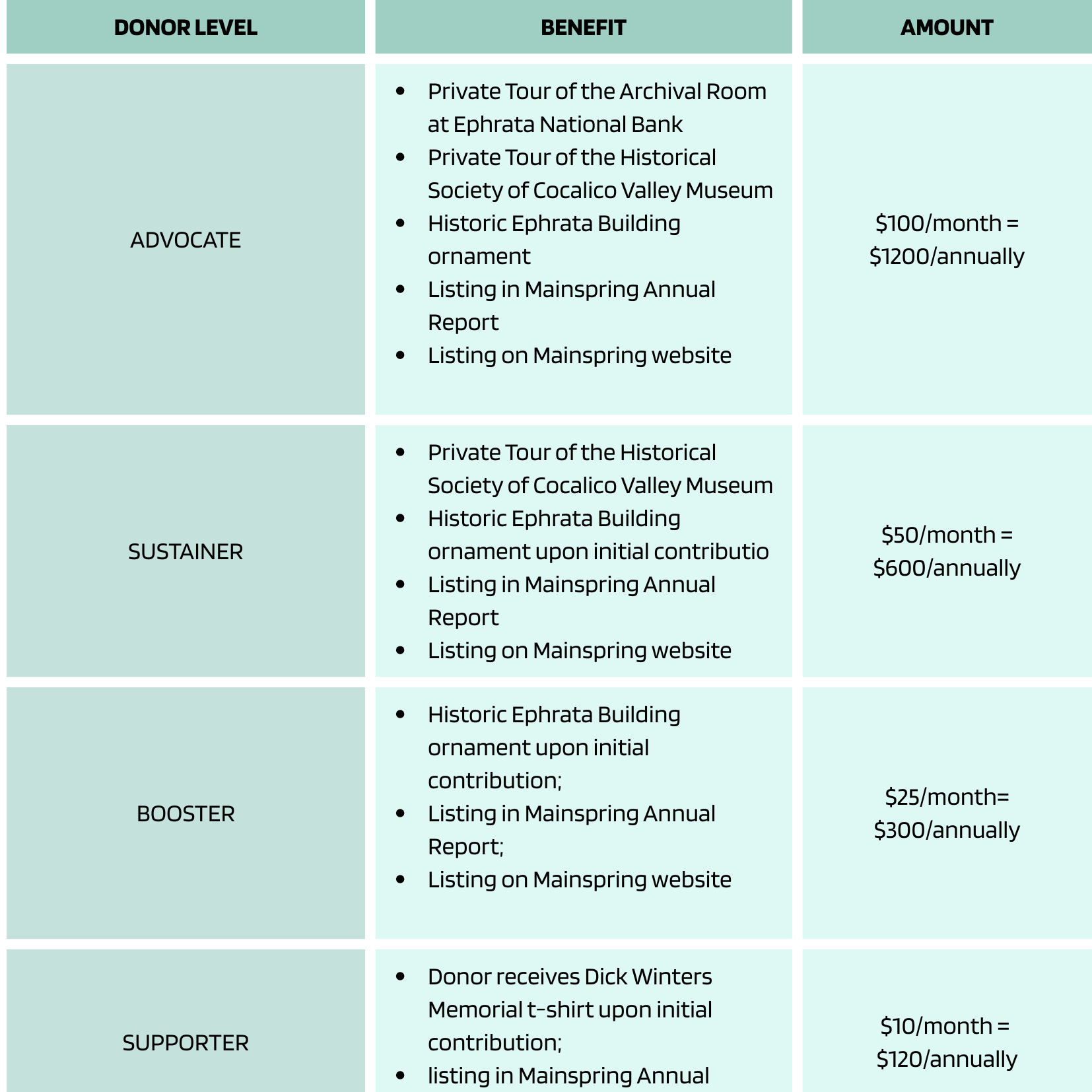 Join Mainspring in building a thriving, resilient, and unforgettable Ephrata.
