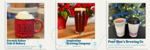 Pick up a passport at any participating business. Visit each location, with your passport, to purchase the featured beverage and get stamped. Return your completed card to any location for a chance to win prizes at the end of the event.